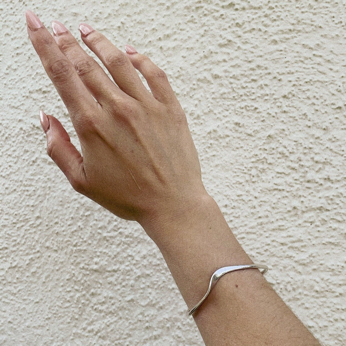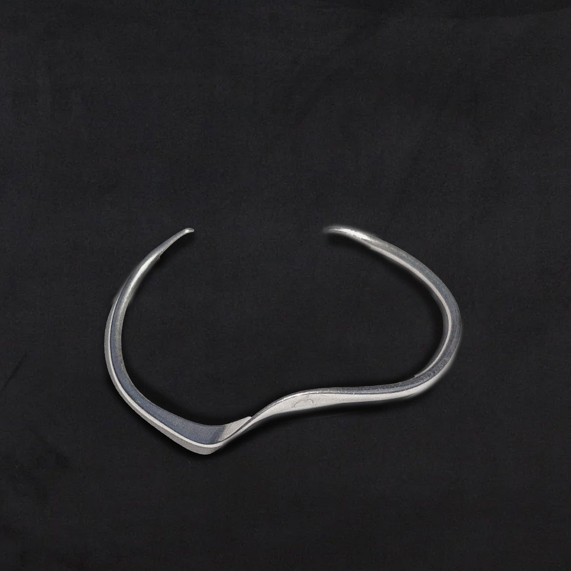 The Vintage Modernist Cuff Bracelet features a minimalist organic form in solid sterling silver. Perfect for layering or wearing solo as a statement.