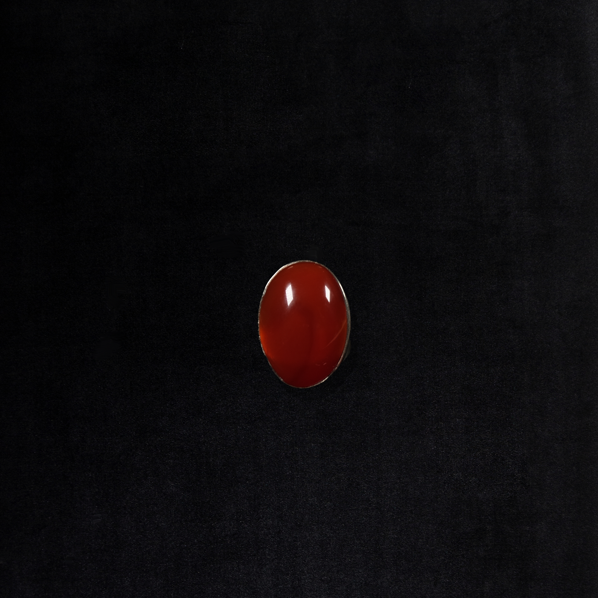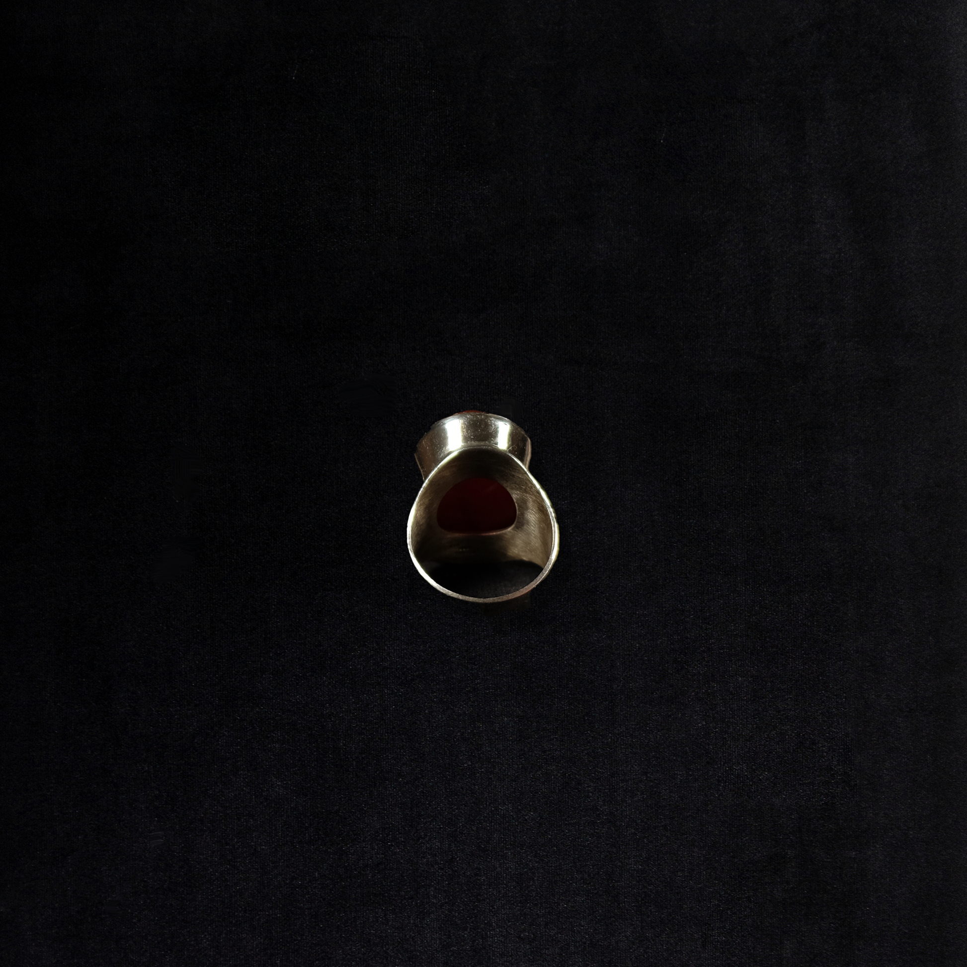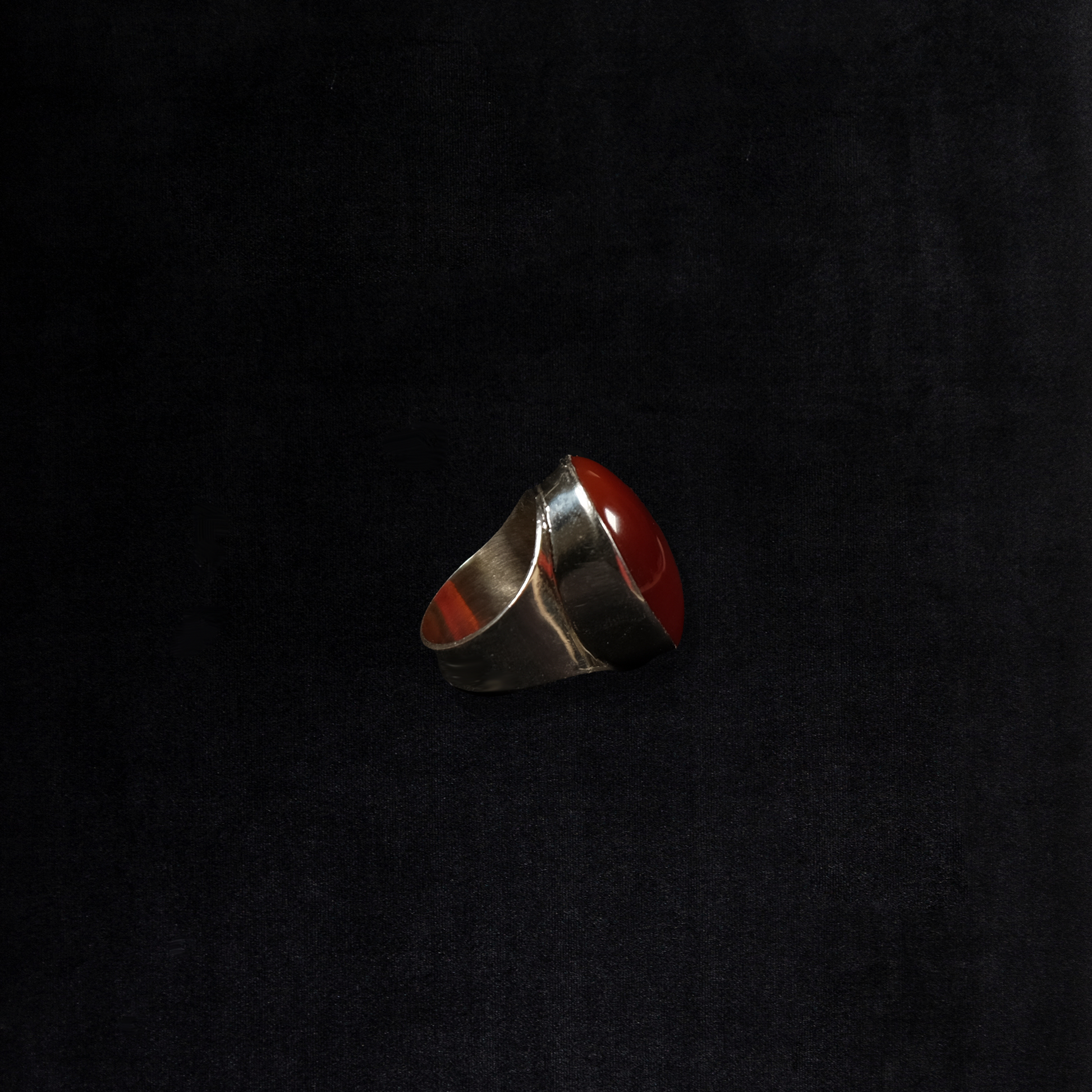 This vintage sterling silver ring features a rich carnelian cabochon set in a clean, sculptural band. A striking yet versatile heirloom piece that brings a moody, natural glow to any look.