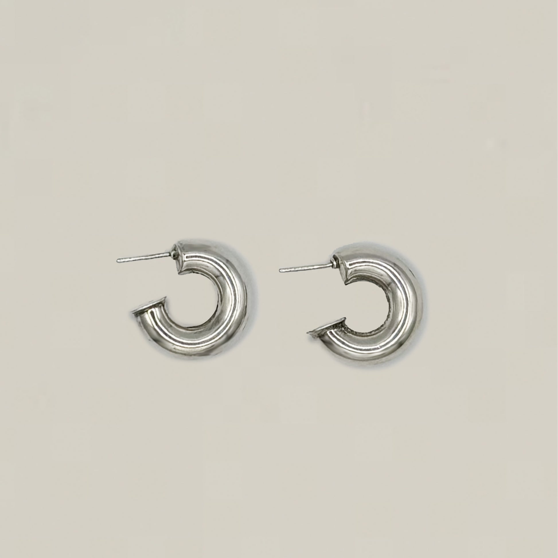 These vintage sterling silver earrings showcase a chunky, rounded hoop design with a smooth, polished finish. A bold yet versatile piece that adds a distinctive touch to any outfit.