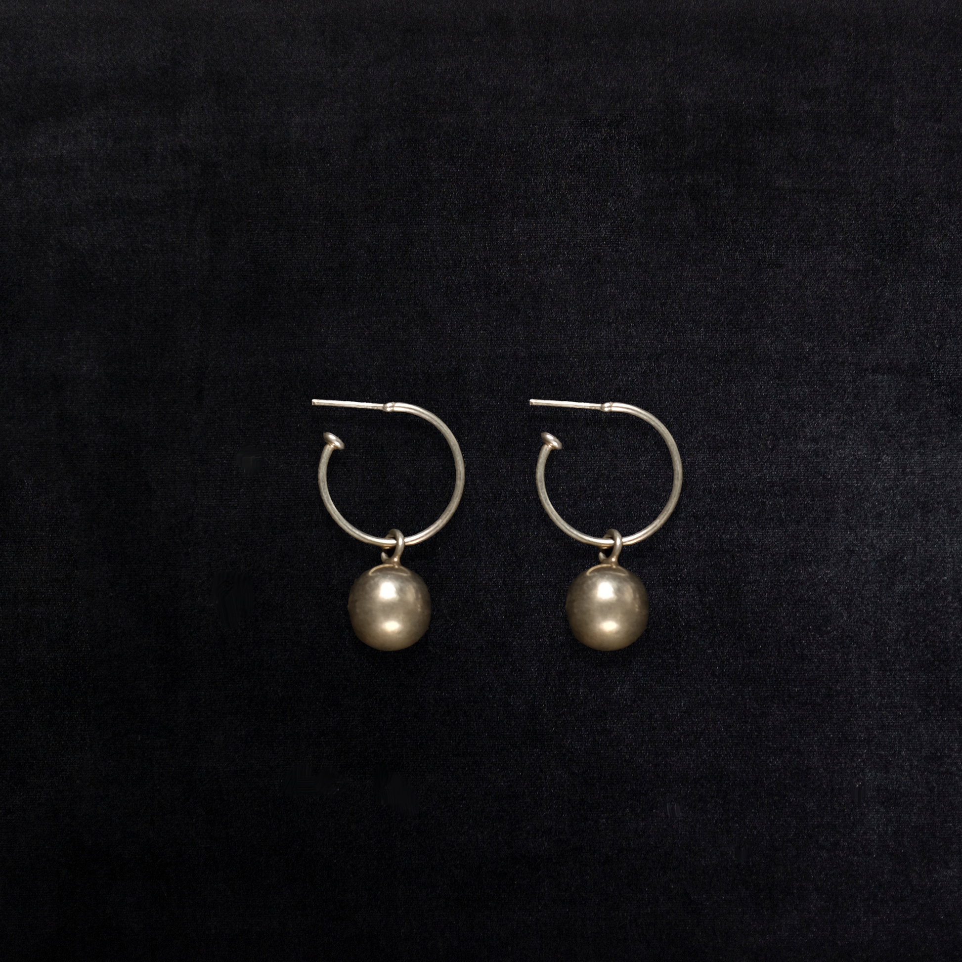 These vintage sterling silver hoops feature detachable sphere charms that swing with subtle weight. Wear them with the charms for sculptural depth—or alone for a pared-down look.