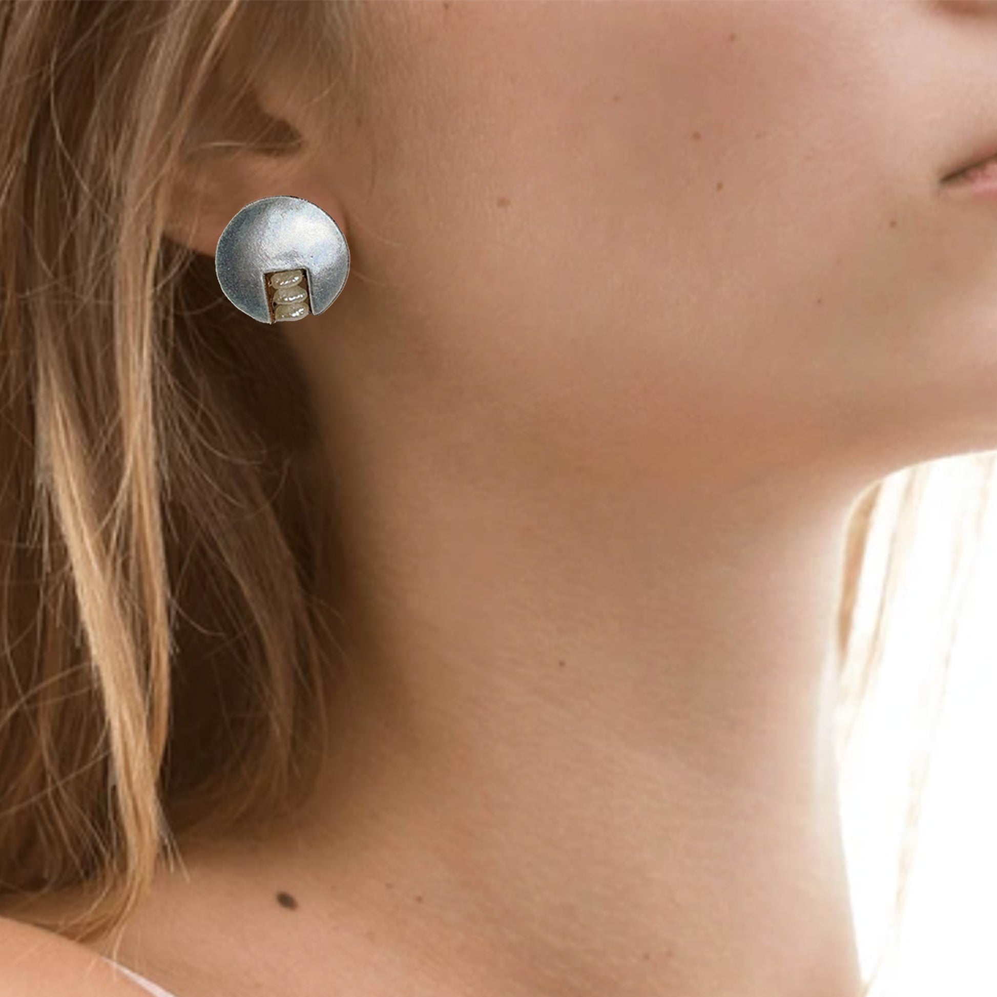 The Vintage Sterling Silver Freshwater Pearl Earrings feature sterling silver with gold wash on back side of discs and organic shaped freshwater pearls. Stud posts for pierced ears. A truly unique artisan made collectors item.