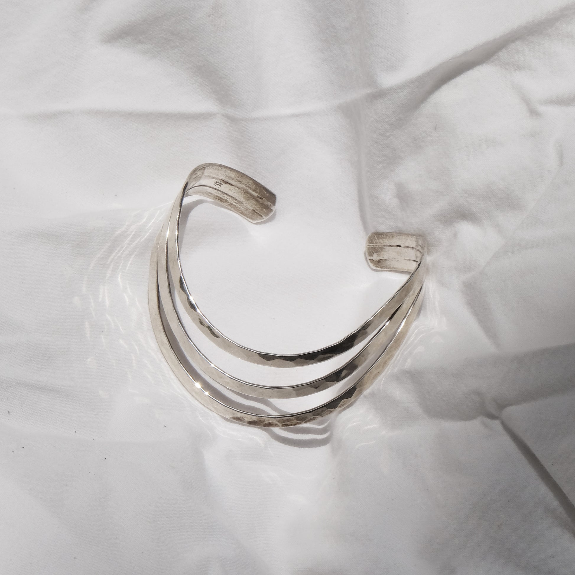 The Vintage Silver Linings Cuff Bracelet is beautifully handcrafted in solid sterling silver featuring a hammered finish.