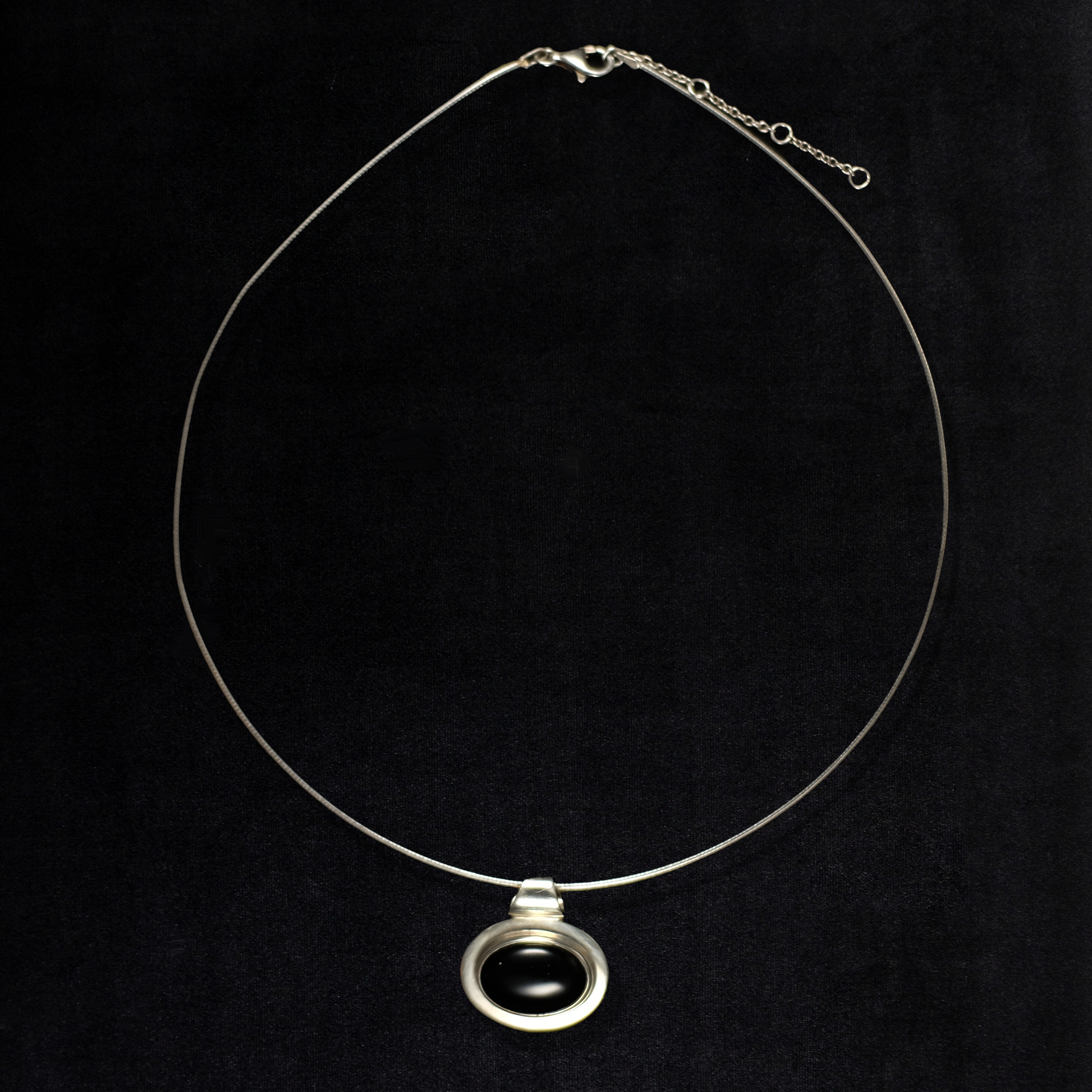 Vintage Sterling Silver Modernist Oval Onyx Necklace