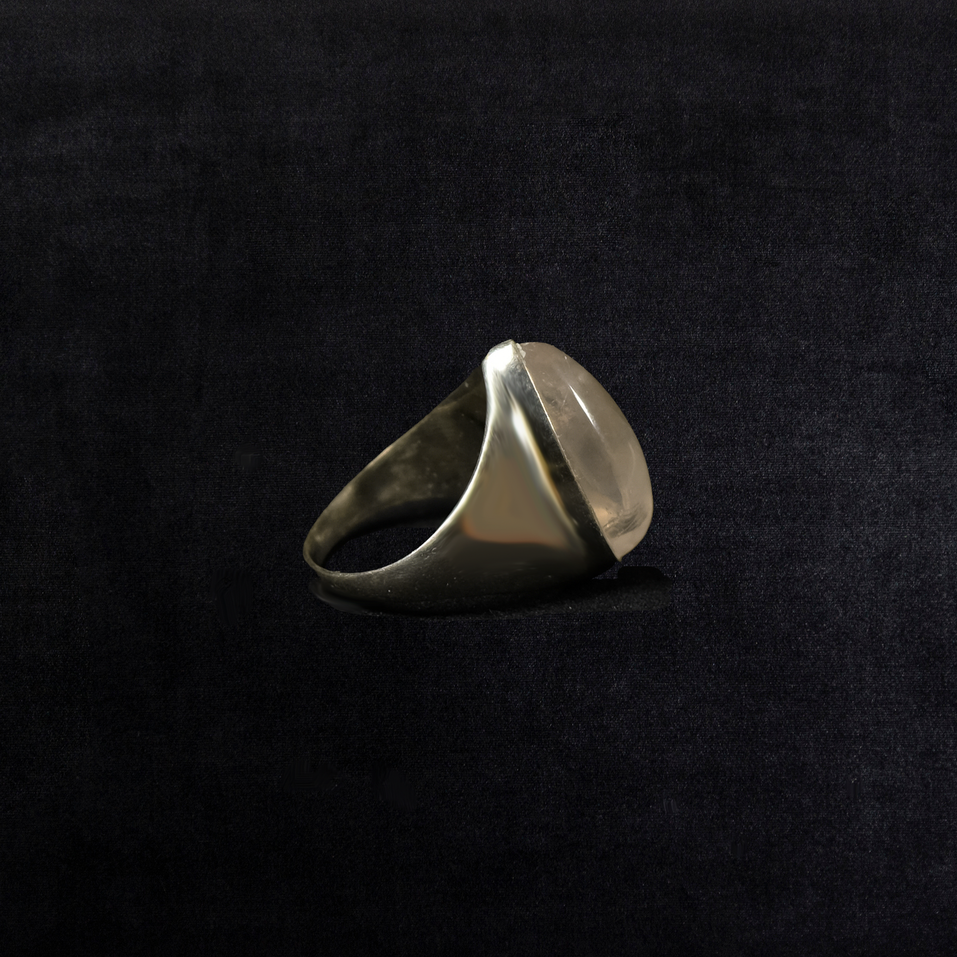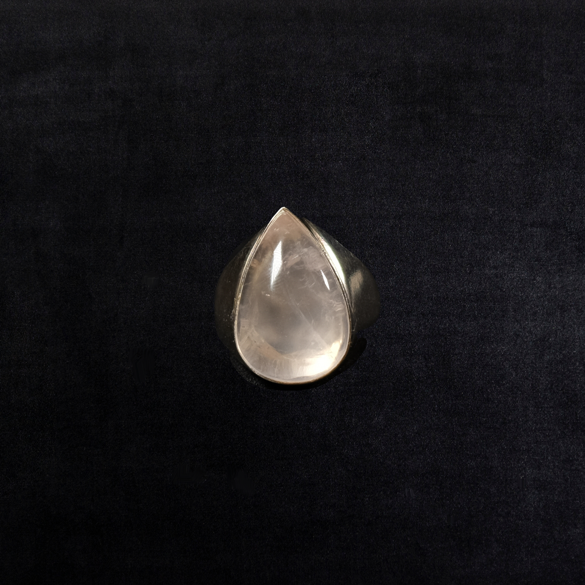 A luminous pear-cut quartz cabochon, cradled in a tapered vintage sterling silver band. Bold, serene, and softly radiant—like a drop of morning light held still in time.