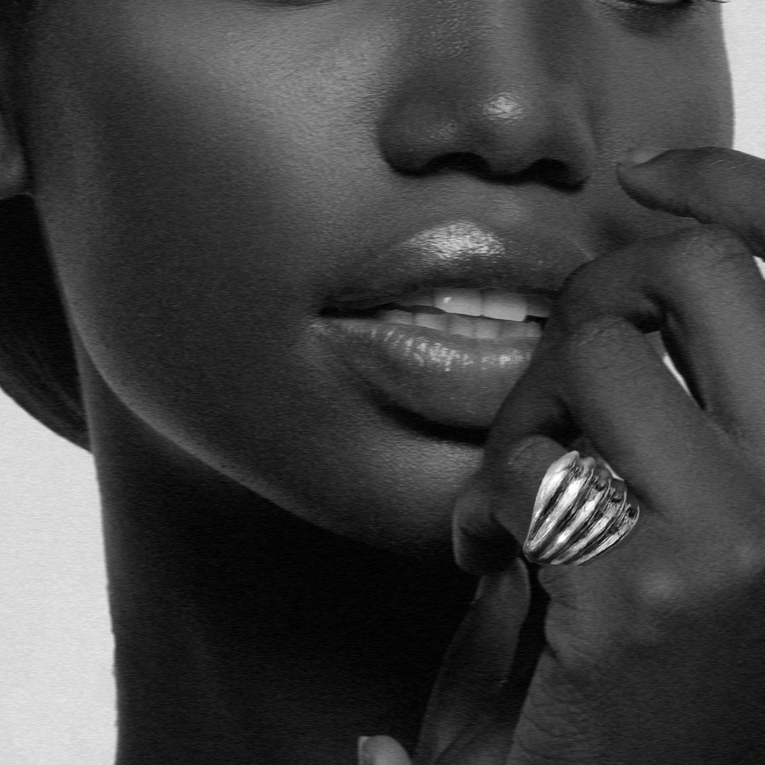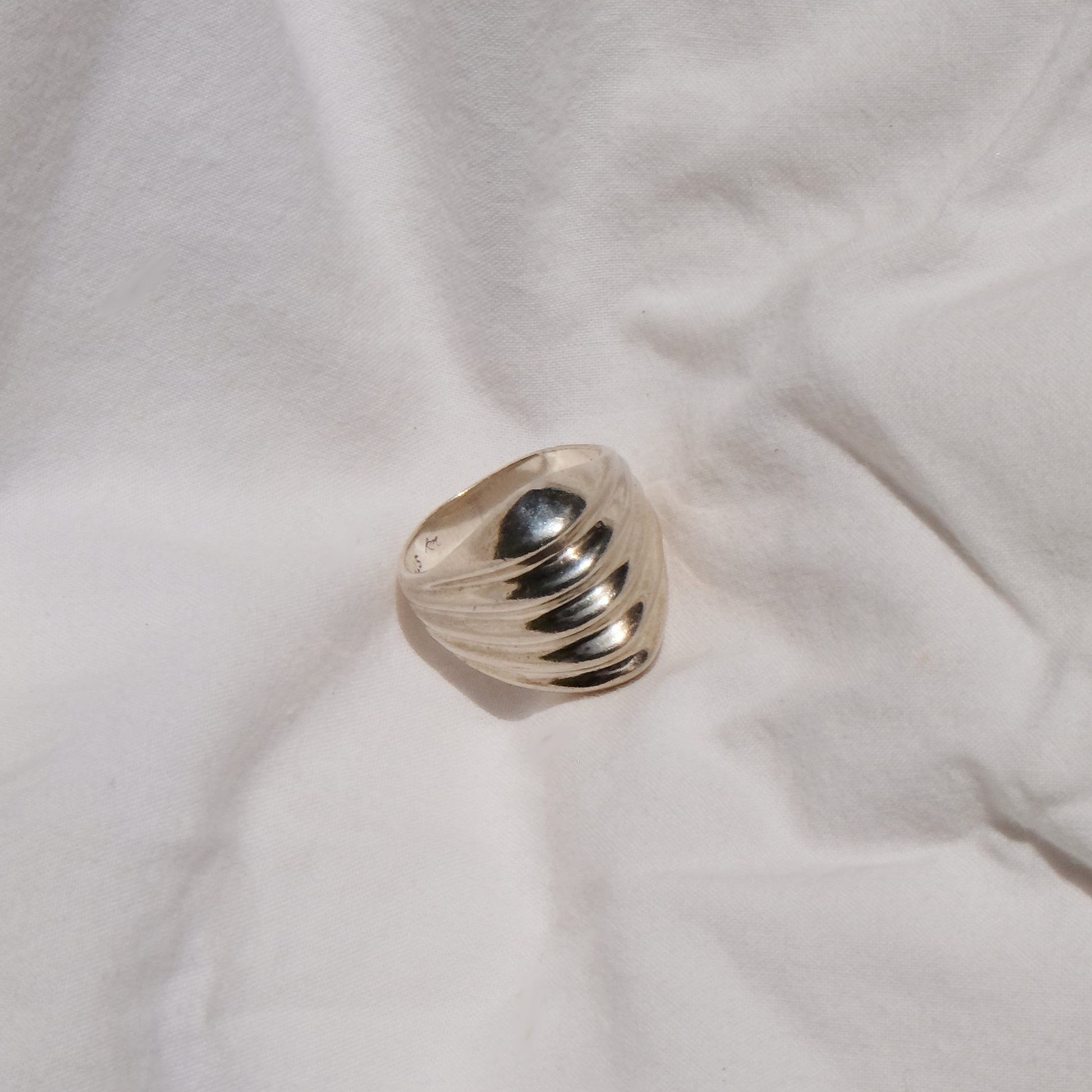 The Vintage Silver Ribbed Moderne Dome Ring is beautifully crafted in solid sterling silver.